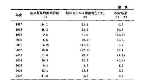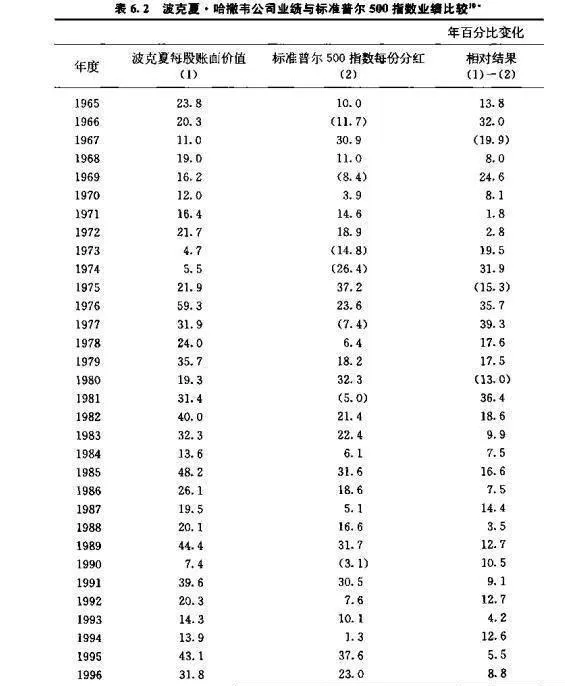 表6.2波克夏·哈撒韦公司业城与标准普尔500指数业比较1