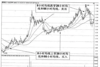 1.8小时均线上穿28小时均线,并且8小时均线上穿55小时均线,是重要的中短线进场买入信号。
