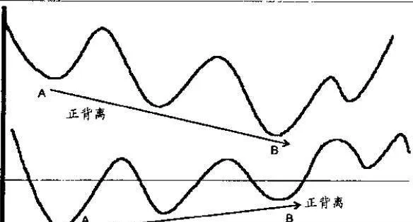 在示意图8-7 中 A、B 两点之间,价格在下跌,但跌势越来越缓。从技术意义上说,价格的势能正在改善,开始转强。的确,如果你觉得市场正在触底阶段,但没有看到背离现象,你就得考虑· 下自己的分析,因为在大多数情况下,不论以什么时间为参照系,价格跌至底部前起码会出现一次正背离。