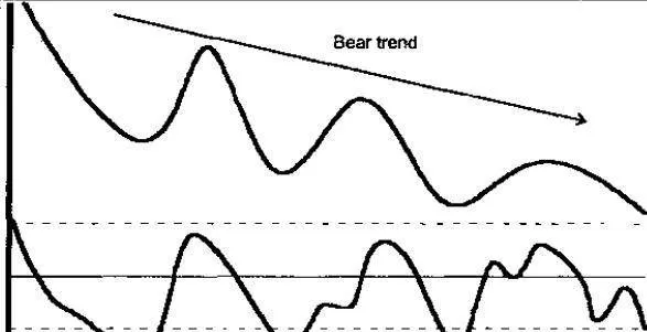 在讲解超买或超卖时,我们假定振荡计量线的峰顶-峰谷