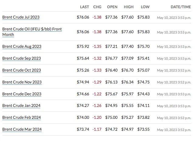 截至 2024 年 3 月的布伦特原油期货价格。Marketwatch.com。