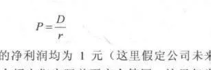 如果某公司未米每年的净利润均为1元(这里假定公司未来现金流等同于净利润,后面章节将介绍它们实际并不完全等同,这里仅为了方便举例使用),贴现率或者称为股权的投资收益率要求为10%,则该公司的价值为1/10%=10元。;