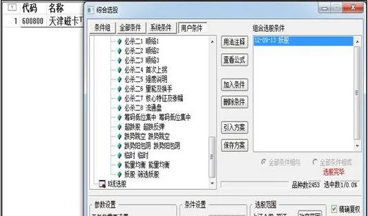 2012年9月13日收盘后使用“妖股”公式进行例行筛选,结果仍然只有一只个股被选出,如下图所示,该股就是天津磁卡(600800)。