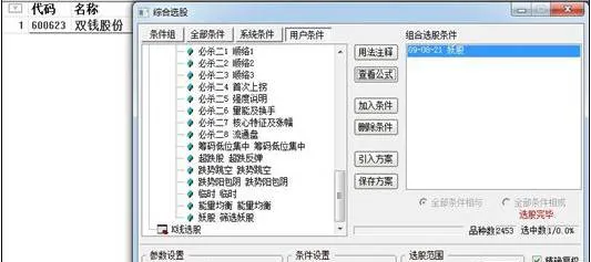 2009年8月21日用“妖股”公式进行选股,最终只有一只个股出现在了选股结果中,如下图所示。这只个股就是双钱股份(600623)。