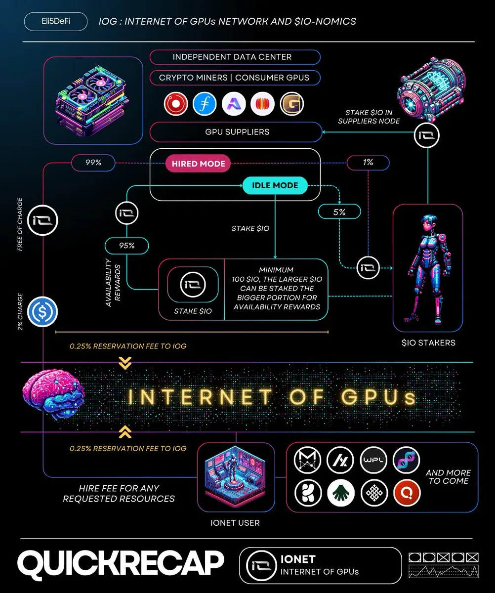 Io.Net 通过鼓励图形处理卡所有者(在“工作量证明”时代用于挖掘ETH 的图形处理卡)向网络提供部分计算能力来支持这一领域。
