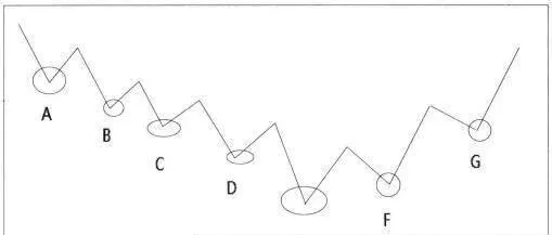 在我们展开论述之前,请先看看图2-1的股价示意图(从A到G所有的点都代表波段低点):