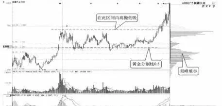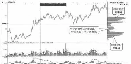 这样,股价就将以此轨迹在两个密集峰之间来回游走。经过不断地累积,两个密集峰之间的峡谷就会慢慢被填满,筹码将逐渐密集,原来的市场格局将被打破,股价将会寻找新的突破,这就是“双峰填谷”形态。