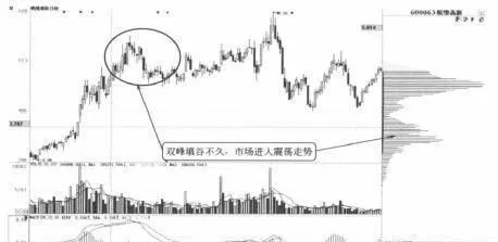 有时候,双峰填谷形态之后的震荡走势振幅非常小,此时运用高抛低吸策略来操作,利润较小,风险却很大。除此之外,投资者还要密切注意段荡走势之后,市场的总体趋势。