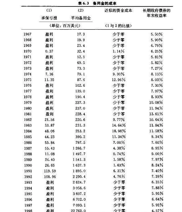 对于大多数保险公司来说,备用金的成本是很高的,这也是衡量保费在何种程度上不能付款给投保人以及支付业务运作成本的测度,于是,保险公司生了“承保亏损(underwritingloss)”。巴菲特指出:“一项保险业务具有价值,当且仅当其备用金随着时间的推移全部成本低于该公司在其他方面获得资金的成本。此外,如果备用金成本高于市场利率那么,这项业务也是没有价值的。”因此巴菲特准备接受小额承保亏损只要它不大于市场利率即丁。事实上,过去41年来,他幸运地找到了一个好的保险业管理层,总体而言,公司获得的大量承保利润远远超过承保亏损。他永远感谢这些优秀的管理层,并在波克夏的年报中高度赞扬了他们。