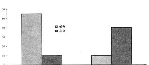 有趣的是,在面对现在危险的局面时,人们往往可以更轻松地解决问题。例如,在那些得分较低并被告知低分对应于早死的试验对象中,55%的人找到了正确的纸牌,相比之下,在高分者中,只有10%的人能解决问题。在得知高分对应于早死的情况下,得到的结果与上述恰好相反(见图18-11)。