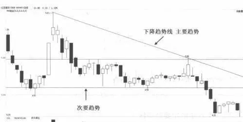 在股价下跌的过程中,通常都会出现反弹,但是股价却不能突破主要的下跌趋势线,通常在主要趋势线处开始新的下跌。此时将反弹的低点进行连接就形成了下跌次要趋势线。
