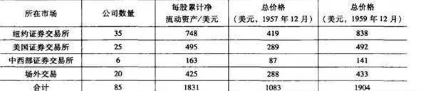 在《聪明的投资者》一书中,他通过如下这张表格(表22-1)展示了这种“净营运资本”法的强大威力。格林厄姆在1957年12月31日按“净营运资本”法买进85家公司的股票,这个表格显示了这85家公司每股股票在2年持有期内实现的投资回报情况。