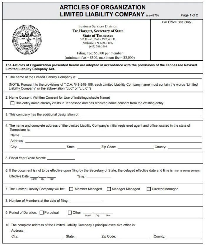 该州还要求企业在提交组织章程时缴纳费用。组织章程类似于公司章程,有时也被称为“组织证书”或“成立证书”。