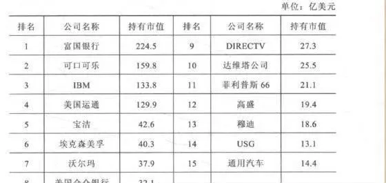 让我们看看伯克希尔公司2014年前儿大重仓股,如表4-4所示。