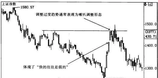 调整过度趋势是一种反诱行为,体现了“快的往往是假的”。多头喇叭诱空,空头喇叭诱多。调整过度趋势通常面临剧烈的趋势波动。