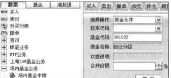 (1)T日。在收盘前如果A+B<2C,A与B是交易价,母基金C是预估当日收盘净值+赎回费率,按比例买入对应的A与B,同样先买B再买A,然后发送合并指令,如图所示,当晚自动合并成功,与盲拆一样。并也需要文艺券商支持。与申购不同,赎回母基金没有5万元起点的门槛,但要求数量是100份的整数倍,因此只要满足最低合并数量就行。千万注意填入“基金代码”的是母基金代码,数量是合并后的母基金份额。