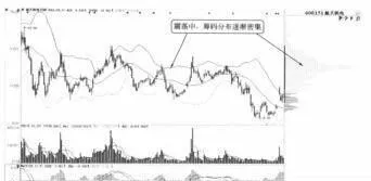 从2009年5月到10月,.v佳通(600182)在经历一波较大的涨势后不断震荡。从5月6日、7月15日和10月9日的筹码分布图中可以看出(如图5. 图6,图7所示),该股的筹码分布在盘整走势中呈现逐渐集中的态势。