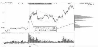 2010年10月15日,股价正处于大幅上涨走势中,此时筹码分布形成三个密集峰。2011年1月27日,股价已经过2个多月的震荡,此时筹码分布形成一个相对高位密集峰。这表明多空双方正在激烈搏杀。