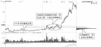 第二,在小幅上涨行情的项部,第一个密集峰处仍然存在大盆的筹码。