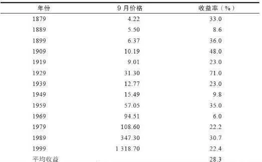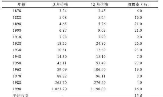 表2-1 1878~1998年每年3月買入並持有到年底的收益率