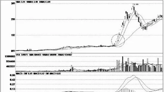 (4)T字陽線之後,當股價出現震盪或回探走勢時,只要成交量不大,且股價在10日均線附近運行,那麼後市一旦再次放量上行,這時可以積極買入。