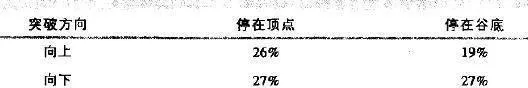 表4.1 價格在突破之後停在頂點成者谷底附近的頻率