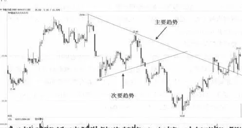 很多股民都認爲,對於趨勢分析只要能夠找到主要趨勢就可以了,但是事實上在很多時候次要趨勢的意義遠比主要趨勢線的意義大,而且在進行分析時,特別是上漲或下跌過程中當出現反向運動時,就更需要對次要趨勢線與主要趨勢線結合在一起構成的特定的圖像進行分析,比如三角形,旗形等。下面就以實際案例講解兩者的關係。