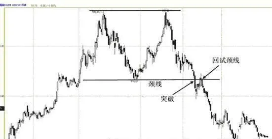 股價自高點回落確定了第一個頂,縮量回落形成谷底後上漲,在第二次上漲過程中成交量有所減少,股價無力衝破前高。第二個頂形成。