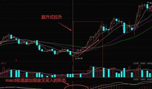 3. 直升式串陽,也叫做V型反轉的主力吸籌形態,不過最後一根陽線要比前邊的陽線小,量能遞減;