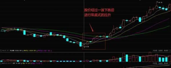 所選的股票是金嶺礦業,以下走勢圖是該股在2010年12月份的一段走勢變化,該股經歷了一段時間的下跌以後,啓動築底形態的走勢變化。K線走勢中所形成的就是連續陽線的走勢,同時底部所對應的量能爲築底底量,代表着具有上漲的啓動行情,此時投資者能夠進行介入操作。