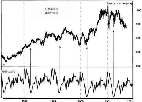 現在,我要展示的真正出人意料的,就是道瓊斯公用事業指數的規律。