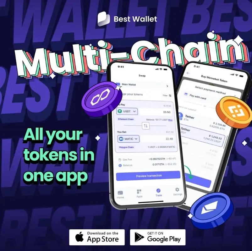 目前,持有尚未被支持的區塊鏈幣的用戶可以將這些幣連接到 Best Wallet,並通過其多錢包模型在一個界面中管理所有幣種。另一個顯著特點是其全面的交易工具套件,支持無縫的法幣支付、跨鏈兌換、質押等功能。