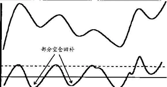 超賣則正好相反。當價格下跌,令人沮喪的消息滿天飛時,幾乎沒有入想買人有價證券。不幸的是,此時正是我們按照示意圖 8-3a行事的時候,我們應當控制自己顫抖的雙手,給經紀入朋友打電話。我們無論如何都應抑制做空的衝動。實際上,此時此刻適當做些空倉回補纔是正確的示意圖 8-3b,當價格上衝,諸位覺得應當持倉儘可能多賺一些錢的時候,請相信我,兌現一部分贏利後你會心地坦然,冷靜客觀。