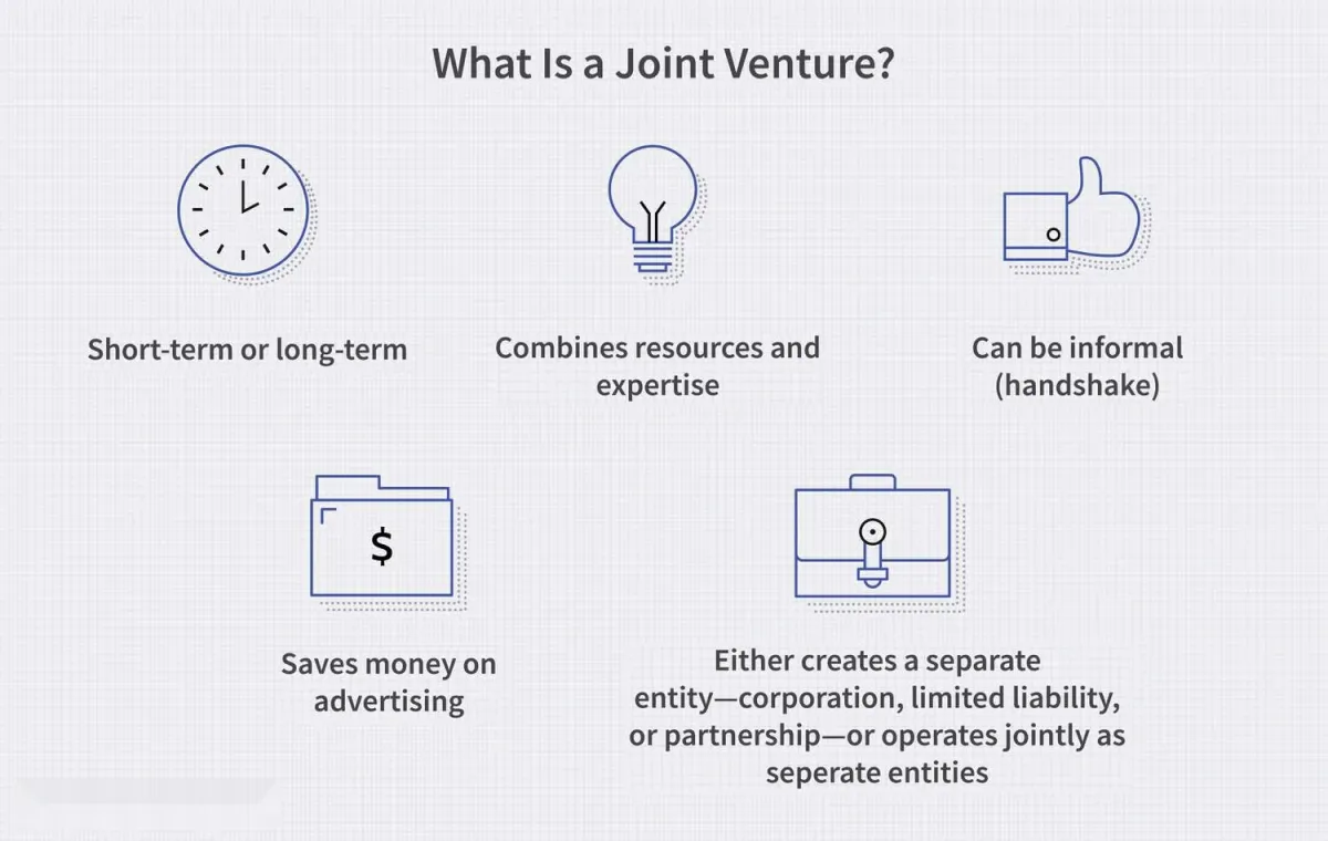 合資企業(JV)是一種商業安排,其中兩個或多個當事方同意彙集資源,以完成特定任務。該任務可以是新項目,也可以是任何其他商業活動。