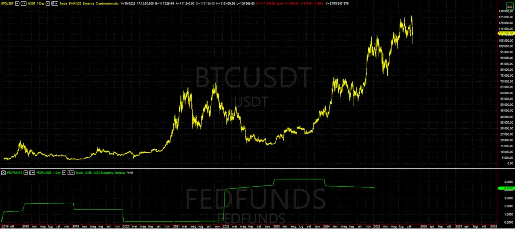 如今,分析加密貨幣市場時,不可能不考慮美聯儲決策的影響。利率影響着資本流動、風險偏好,並最終影響着比特幣的價值。當利率較低時,流動性充裕,市場趨於增長。相反,當利率上升時,信貸收緊,投機活動減少,價格受到影響。