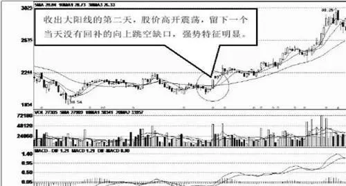 次日走勢直接反映大陽線的上漲力度大小,也是對大陽線的一種肯定或否定。收出大陽線之後,第二天通常有三種盤面現象。