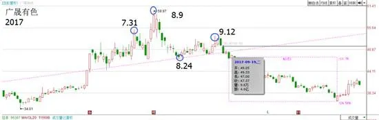 自2008年11月初該股股價見曆史大底以來,到2009年12月下旬,該股股價已經持續上漲一年多,且漲幅達到驚人的7倍多。2009年12月下旬該股股價已到達曆史高位,進入高位橫盤築頂階段。