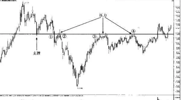 支撐線和壓力線附近通常成交量很大,成爲成交密集區,所以同一成交密集區附近的水平線既是行情由向上攀升的壓力區,也是行情由上向下滑落的支撐區。