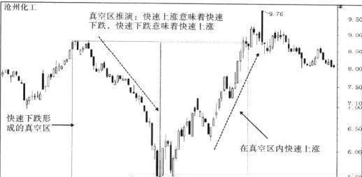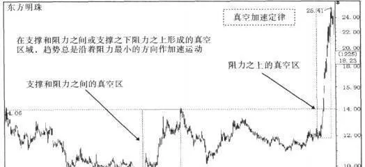 在支撐和阻力之間或支撐之下阻力之上形成的真空區域,趨勢總是沿着阻力最小的方向作加速運動。
