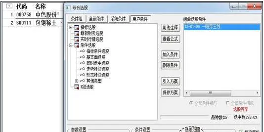圖中顯示當天滿足條件的個股只有兩隻,分別是中色股份(000758)和包鋼稀土(600111),經過對比形態、指標等技術要素後發現其實兩隻票都不錯,都可以作爲操作標的。但是考慮到包鋼稀土(600111)歷來屬於稀土炒作熱門股,且基本面要明顯佔優勢,於是綜合判斷後選擇包鋼稀土(600111)。
