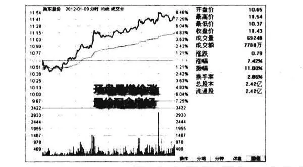 結合該階段股價所處的位置,如下圖所示,股價在2011年12月見底之後,出現一段時間的橫盤整理,多空方勢力均衡.隨後在2月10日出現量增價漲的情況,打破橫向整理的箱體格局,表明多方勢力佔據上風,股價將從此進入上漲行情中。