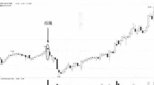 該圖同樣是單K線圖像,與錘頭不同,該K線圖形的實體部分比較長,而且下影線通常與實體長度相當,另外該K線通常在上漲過程中出現。對於該K線來說不管是下跌還是上漲,都代表股市後市看跌,如圖3所示。