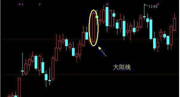 大陽線是具有強烈底部單日反轉或強勢持續的看多信號,但宜進一步確認形態的有效性。在長期低迷的市場中,往往積累了一股難以阻擋的做多能量,這股能量一旦噴薄而發,會出現十分驚人的場面,大陽線就屬於這種形態。大陽線的收盤價遠遠高出開盤價,具有強烈的看漲意義。