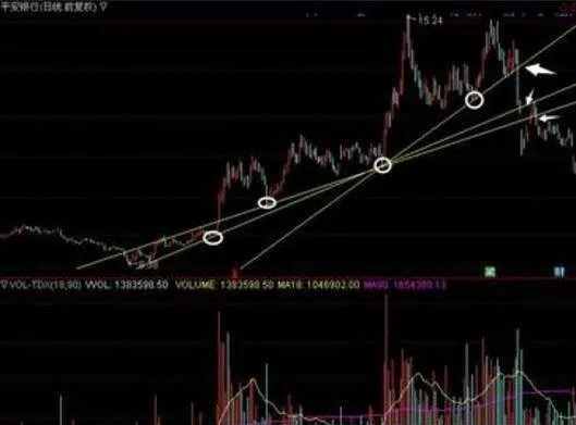 當投資者在利用畫線工具判斷買賣點時,也可以結合KDJ指標進行綜合分析。當利用畫線工具得出的買賣信號與KDJ指標發出的買賣點信號相一致時,投資者可以大膽進行買賣操作;如果不一致,不妨先觀望,再擇良機。
