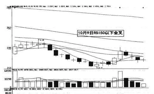 這隻票完全是按照資金流的方式在運行,我前面對資金流的說明大家好好去體會一下,會獲得許多新的見解。好多人當時說鋼鐵是最後啓動的,鋼鐵啓動大盤就要跌了,我說不是,整個一輪運行沒有結束,說鋼鐵是最後啓動沒有道理;如果是最後啓動,後期怎麼會有連續兩個新高,所以這種外界的判斷是錯的。但是它漲到3元以上,確實該賣了,10月26號那天漲停以後開板,RSI已經達到94,等到第二次衝擊過了高點的時候,實際呈放量狀態,而且是遊資行情,有20%以上利潤完全可以走了,而它已經有超過30%的利潤.不論按照哪項技術要求都是應該走的。