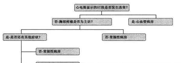 如果患者的心電圖出現異常(ST段出現變化),那麼,就允許他們直接進入重症監護室。否則,再考慮第二個提示:患者是否表現出足夠程度的胸部疼痛症狀?如果是,則允許患者進入重症監護室,以此類推。