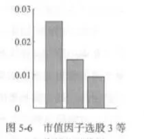 圖5-6展示了將所有股票按照流通市值大小劃分爲3個等份,每-等分中的股票又按照等權重進行組合時,3個等份各自的平均月度收益,分別爲2.62%、1.46%和0.94%。由於同期的股市從整體上來說是上漲 0的,因此三個值均爲正值是一個合理的結果。第1等份和第2等份之間的月度收益率相差1.16%,第2等份和第3等份之間則相差0.52%,表現出了非常明顯的下降趨勢。當然,由於等份數量較少,只以此來判定因子大小和未來收益間的逆向關係是不夠的。