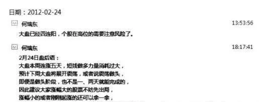在大盤見大波段最高點的前一天,我就在飛信和電視節目中做出了下週大盤見頂的預判,同時把見頂後的狀態也一併寫出,下面是2月24日下午和收盤後我對後市的兩次提示。