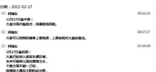 在大盤見到大波段最高點的當天,即2月27日上午和收盤後,我又兩次明確地提示大盤已經波段見頂。