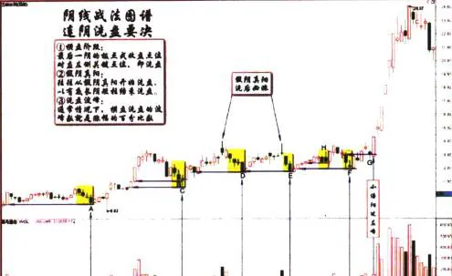 - 同樣的動作,有“主動”和“被動”之分。同樣是“陰過陽”,爲什麼圖中A點比E點的跌幅大?因爲A點是在此前陽柱下方的“主動拋售”,而E點是在此前陽住上方的“被動拋售”。主動拋售肯定比被動拋售的下降幅度要大,因爲主動拋售是賺了錢的拋售,而被動拋售是沒賺錢的拋售。所以E點的下跌過程中必然有自我救贖行爲。